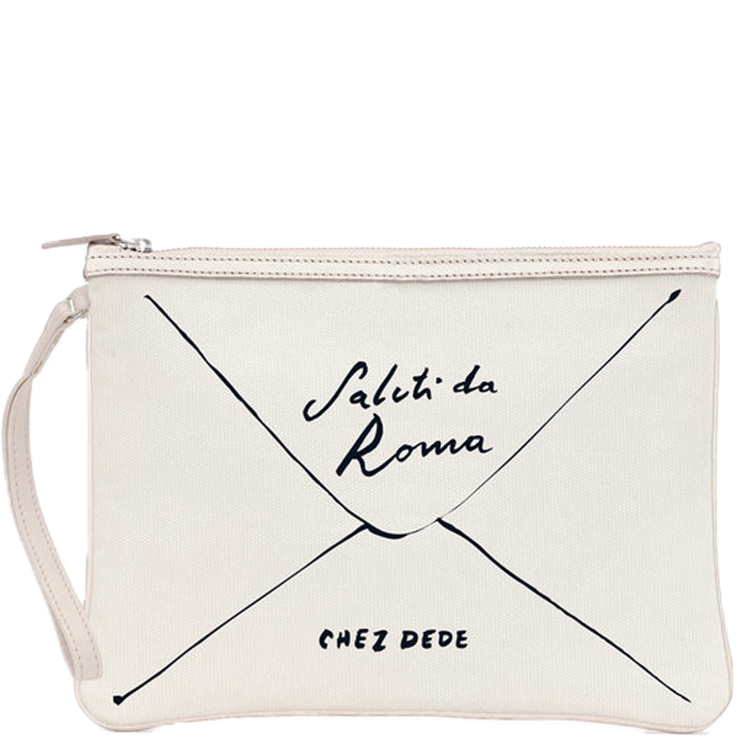 La maison franco-italienne Chez Dédé propose des collections exclusives qui reflètent la qualité de l’artisanat italien : un mélange d’art, de finesse et de savoir faire. Le Clutch Saluti Da Roma est un sac en coton et en cuir de veau italien à tannage végétal. Habillé d’une lettre élégamment dessinée à la main, il a été imaginé par le fondateur de la marque, Andrea Ferolla et fabriqué en Italie. La pochette possède une anse en cuir détachable. Son petit format est parfait pour l’emporter partout avec soi.