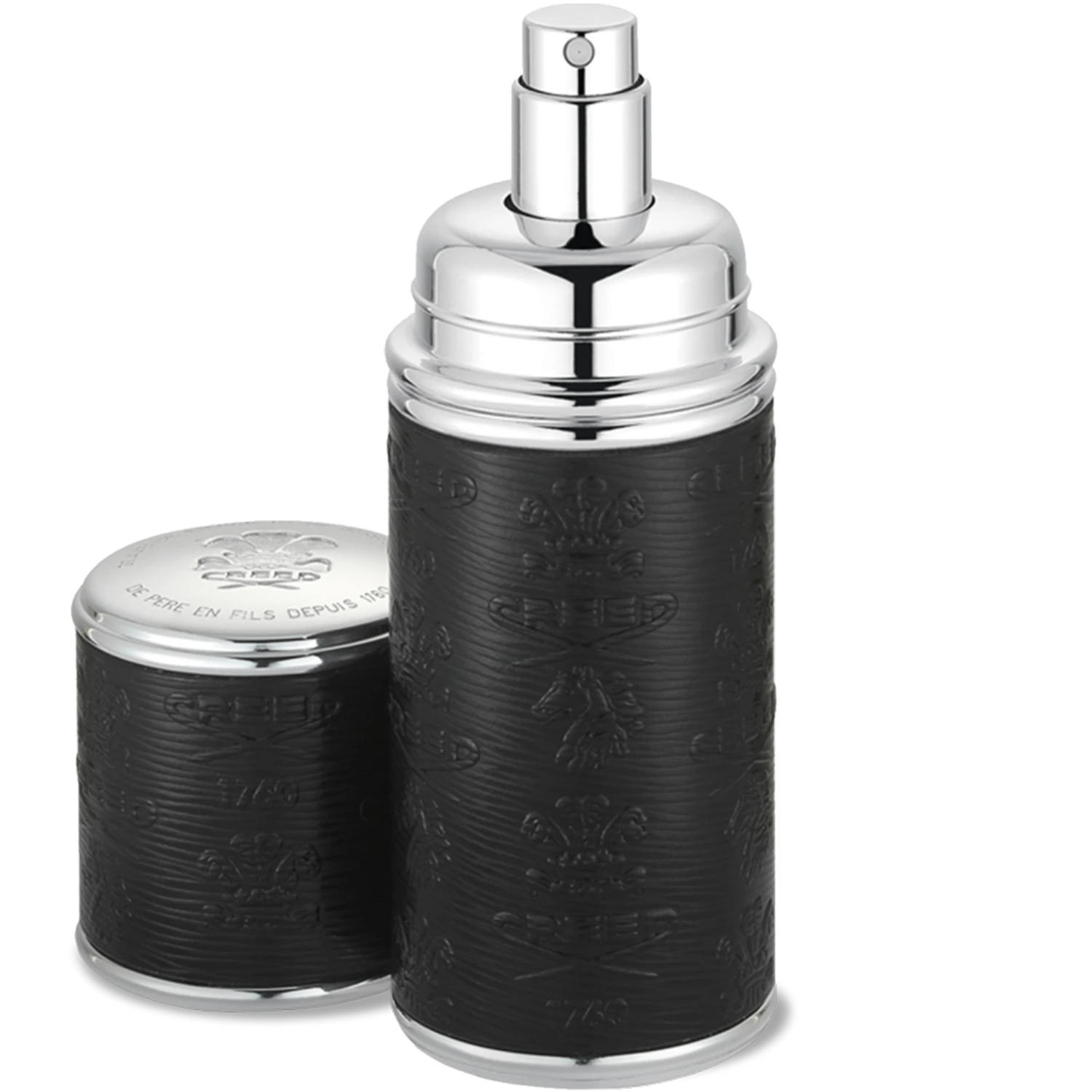 Conçu pour être rangé dans n’importe quel sac ou étui pendant les voyages, ce précieux vaporisateur de Creed est en métal argenté, entouré de cuir noir fabriqué en Italie. Il est prêt à contenir n’importe quelle fragrance.