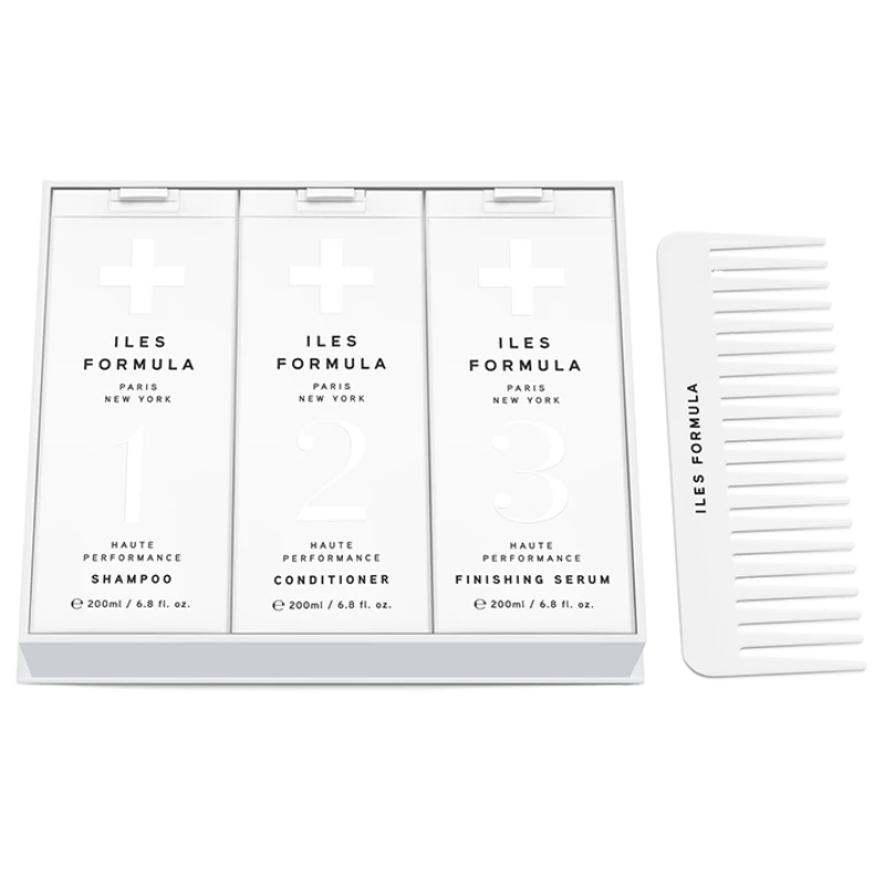 Une routine en 3 Ă©tapes pour tous les types de cheveux. Ce coffret contient: Le Shampoing Haute Performance qui rĂ©pare sans alourdir et laisse les cheveux brillants et plein de volume. L’Après Shampoing Haute Performance : le joyau d’Iles Formula, qui transforme les chevelures maltraitĂ©es ou fatiguĂ©es en mèches douces comme de la soie. Le Finishing Serum Haute Performance: qui protège des agressions externes, de la chaleur du coiffage et de l’humiditĂ©. Le peigne pour distribuer uniformĂ©ment l’après shampoing et bien coiffer les cheveux nourris!