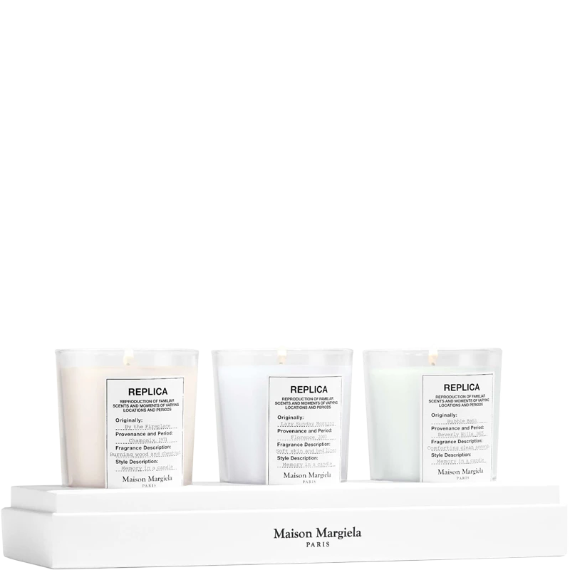 Retrouvez dans un seul coffret trois mini bougies essentielles de Maison Martin Margiela: By the Fireplace pour une fragrance chaleureuse de bois brûlé, Lazy Sundy Morning pour un frais parfum floral et musqué, et Bubble Bath pour un moment de détente aux accords de rose et de jasmin…