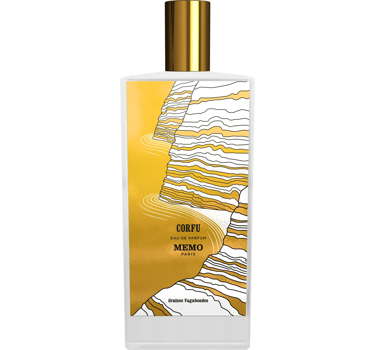 Un voyage au coeur de la Grèce, sur l’île de Corfu. Le soleil, à son paroxysme, réchauffe de ses rayons aux odeurs de bergamote, mandarine et cassis. Laissant sur la peau un voile doré, il accompagne ce séjour aux notes de basilic framboise et rhubarbe. Ce sillage, incitant à plonger dans l’eau turquoise de l’île, est un bouquet floral d’iris, jasmin et muguet sur fond chaleureux de mousse et de patchouli.