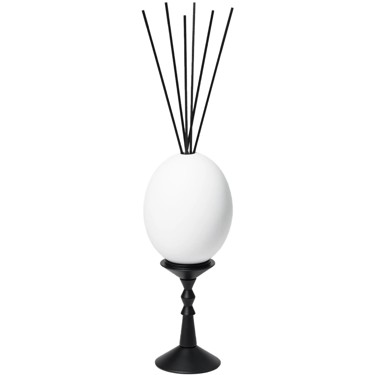 La maison Trudon s’inspire des cabinets de curiosité du siècle des Lumières pour cet oeuf en céramique blanche posé sur un pied en bois tourné. Symbole de renaissance, il est à la fois un élément décoratif et un diffuseur qui répand pendant plus de trois mois les parfums emblématiques de la maison tel qu’Abd El Kader. C’est un vent de liberté venant de la côte Wilaya de Mascara, une commune algérienne. Une senteur de thé à la menthe se contraste avec l’air chaud et épicé que l’on aperçoit à l’horizon. La fin, c’est la subtilité du thé et de la menthe qui laisse apparaitre les facettes tabacées et vanillées de cette bougie.