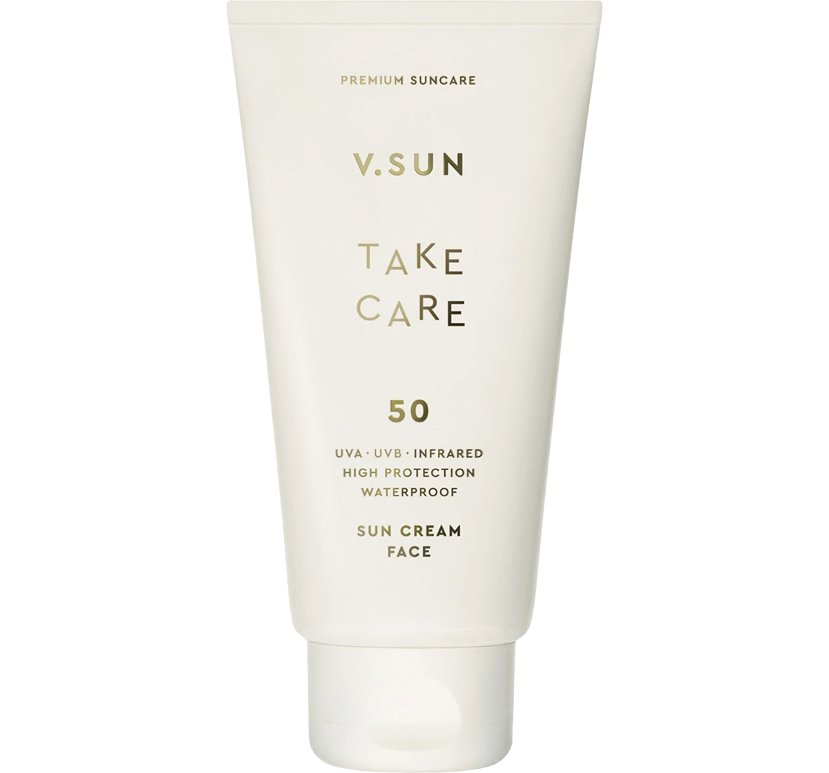 La Sun Cream V.SUN SPF 50 pour le visage assure une protection solaire tout en hydratant et en limitant le vieillissement prématuré de la peau.